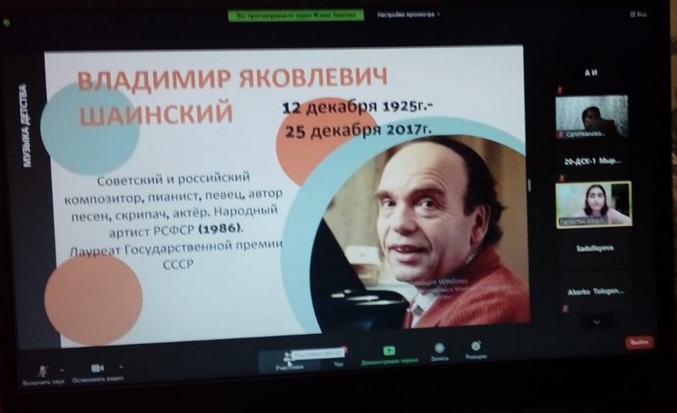 А. С. Пушкин клуб мүшелері композитор Владимир Шаинскийдің туғанына 95 жыл толуына арналған шығармашылық кешке қатысты. Іс-шара Қазақ ұлттық университетінің орыс орталығы мен әл-Фараби атындағы ҚазҰУ онлайн алаңында өтті.