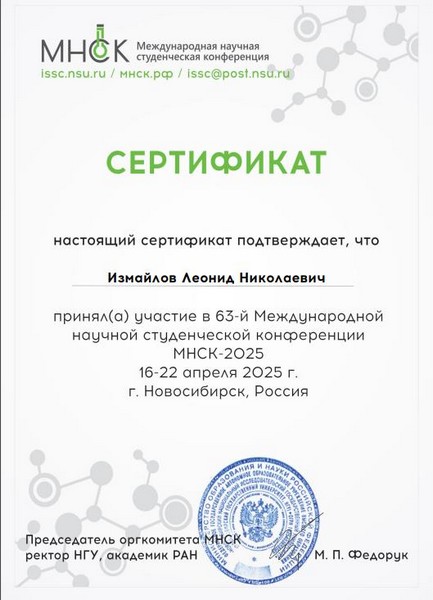 6. Измайлов Л.Н., Ерболатова Г.У. Разработка сплавов с эффектом памяти формы, с помощью высокоэнергетического измельчения порошков на основе NiTiCu // XVI Международной научной конференции, посвященной памяти профессора Плотникова Сергея Викторовича, 2025 г., С.27-32.