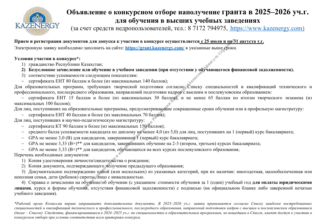 Гранты на обучение от предприятий «КАЗАТОМПРОМ» и «KAZENERGY»