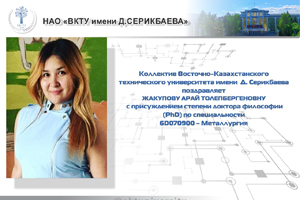 - 2025-12-11Коллектив ВКТУ им. Д.Серикбаева поздравляет с успешной защитой Бугаева Андрея Борисовича и Касымбаева Алексея Валерьевича