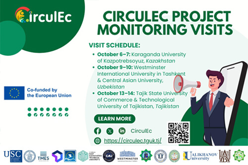 - 2025-09-24Орталық Азия университеттеріндегі CirculEC жобасының мониторингтік сапарлары