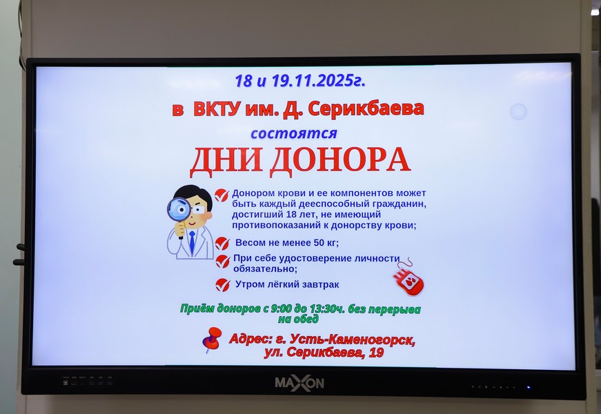 18-19 ноября 2025 года - Дни Донора в ВКТУ, организованные областным центром крови.