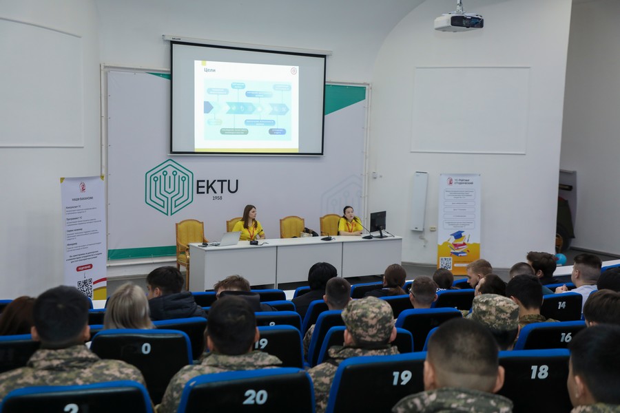 Компания өкілдері өз қызметі, студенттік тәжірибе және мансаптық мүмкіндіктер туралы толық ақпарат беріп, 1С жүйесін қолдану арқылы бизнес-процестердің қалай жүзеге асатынын нақты мысалдармен көрсетті. Студенттер көкейлеріндегі сұрақтарын қойып, компания мамандарынан жан-жақты жауап алды.