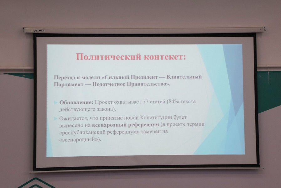 Іс-шараға университеттің профессор-оқытушылар құрамы мен қызметкерлері қатысты. Отырыс барысында Жаңа Конституция жобасында айқындалған басты құндылықтар, қағидаттар мен жаңашыл өзгерістер, сондай-ақ олардың білім беру жүйесі мен қоғамның дамуына ықпалы қарастырылды.