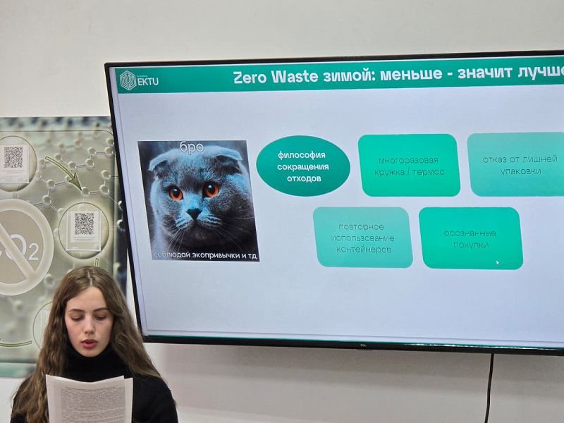 Спикерлер ретінде Тұрақты даму офисінің қызметкерлері, экоклуб жетекшілері мен белсенділері сөз сөйлеп, қысқы кезеңде ресурстарды жауапты тұтыну, қалдықтарды азайту және қоршаған ортаға кері әсерді төмендету бойынша практикалық ұсынымдармен бөлісті. Энергия үнемдеу, жылуды ұтымды пайдалану, пластик жүктемесін азайту және қалдықтарды сұрыптау мәселелеріне ерекше назар аударылды.