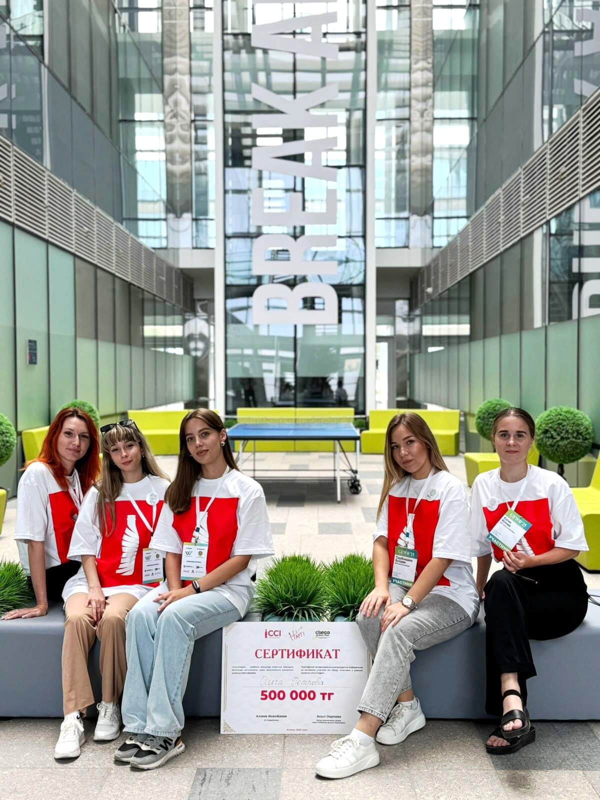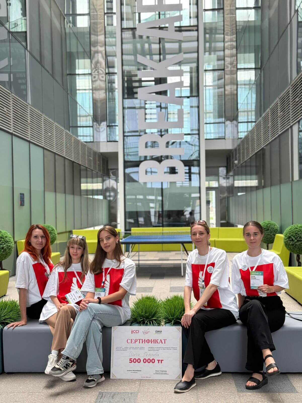 Куратордың үздік жұмысы үшін берілген 500 000 теңге көлеміндегі сертификат (жобадағы жоғары оқу орындары арасында 1-орын) - команда мен университет еңбегінің лайықты мойындалуы!