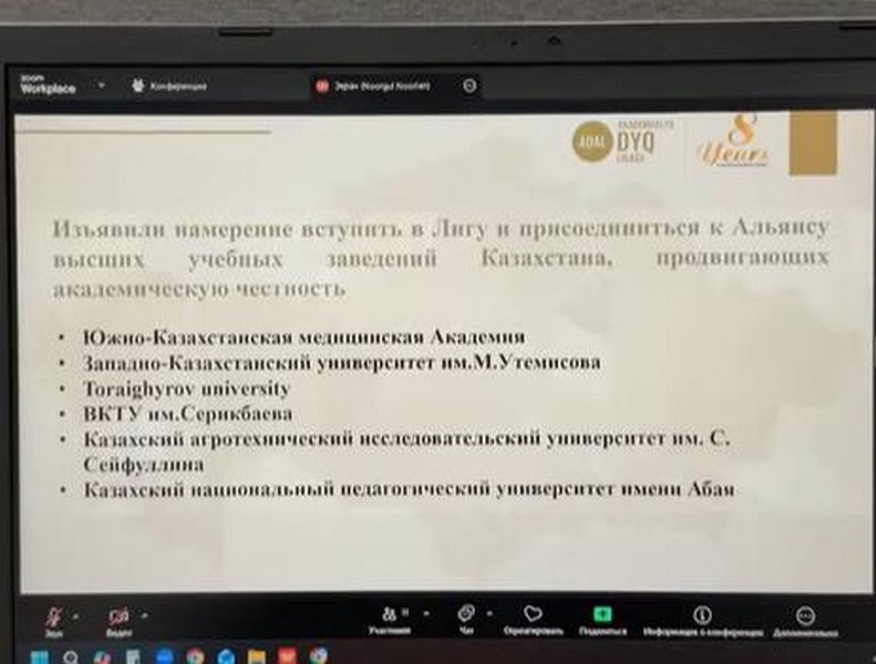 2026 жылғы 4 наурызда Академиялық адалдық лигасы қатысушыларының Жалпы жиналысының дауыс беру нәтижесі бойынша Д. Серікбаев атындағы Шығыс Қазақстан техникалық университеті ұйымға «Өтініш беруші» мәртебесінде қабылданды.