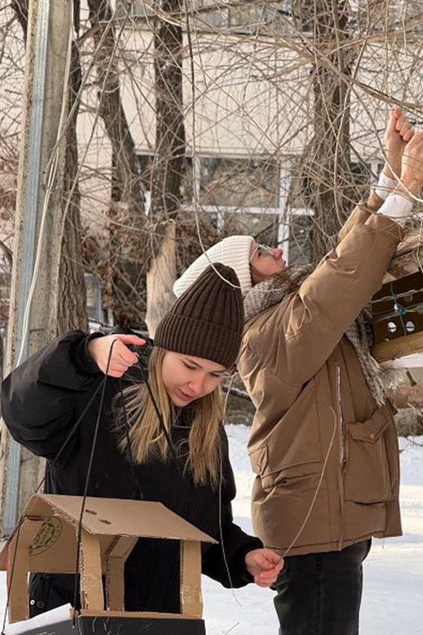 Студенты и сотрудники Офиса по устойчивому развитию университета приняли участие в размещении кормушек на территории кампуса, поддержав зимующих птиц и внеся вклад в формирование бережного отношения к окружающей среде. Особую благодарность университет выражает студентам колледжа за помощь в сборе и подготовке кормушек, благодаря чему акция прошла организованно и результативно.