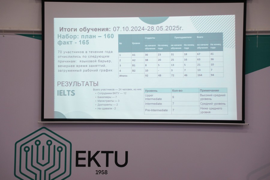 - Ағылшын тілі бағдарламасы бойынша оқыту барысы және жобаны жалғастырудың келешегі. Баяндаманы Басқарма мүшесі - халықаралық ынтымақтастық жөніндегі проректор А. Сәрсембаева таныстырды.