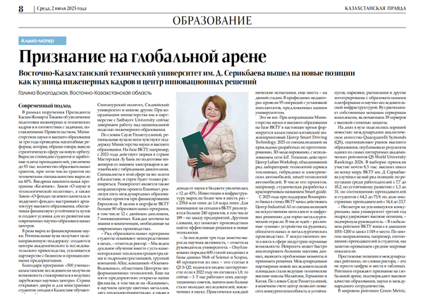 "Университет развивает партнерство" 25 декабря 2024 года "Казахстанская правда" № 248 (30375) |