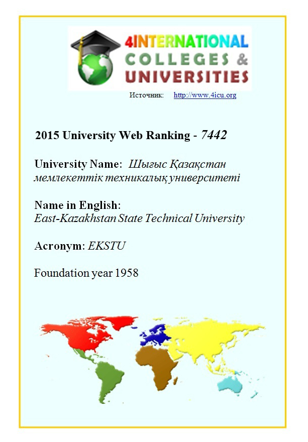 По оценке 4 International Colleges & Universities, ВКГТУ имеет 7442 позицию среди 11307 вузов мира (среди 87 вузов Казахстана занимает 26 место)