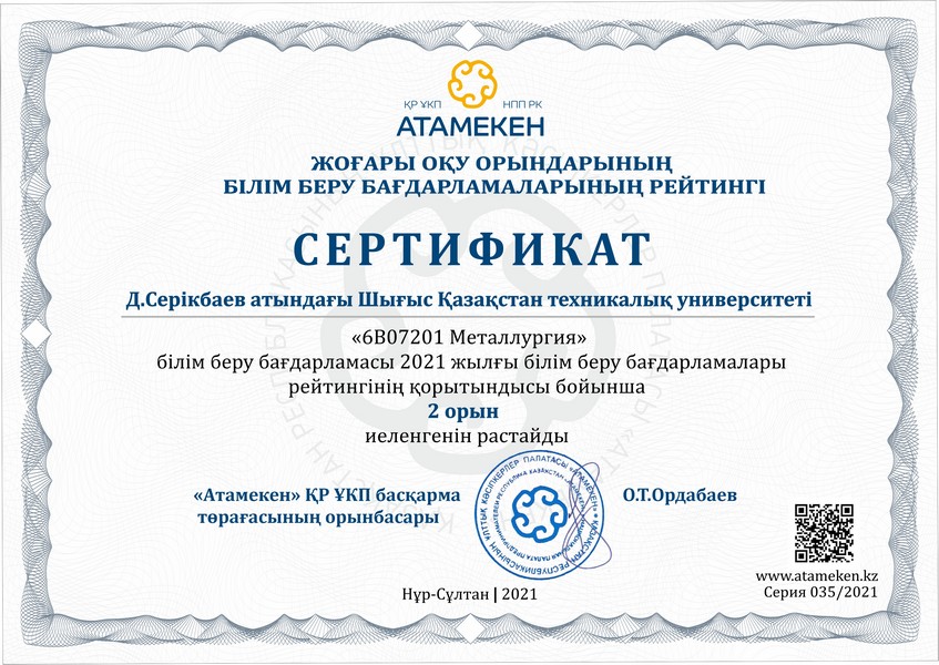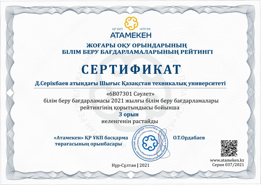 Рейтинг нәтижесі бойынша Д.Серікбаев атындағы ШҚТУ-ның 16 білім беру бағдарламасы Қазақстан бойынша үздік бестікке енді: