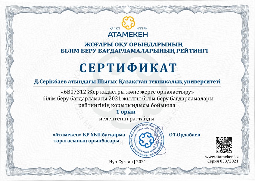 «Атамекен» ҚР ҰКП Қазақстан Республикасы Білім және ғылым министрлігімен бірлесіп төртінші жыл қатарынан қазақстандық жоғары оқу орындарының білім беру бағдарламаларына тәуелсіз бағалау жүргізуде.