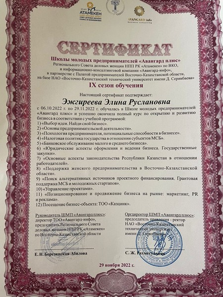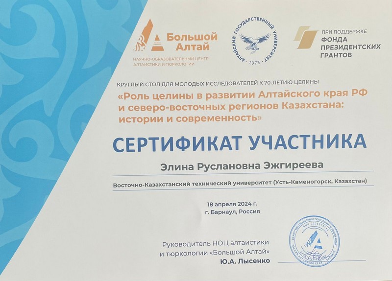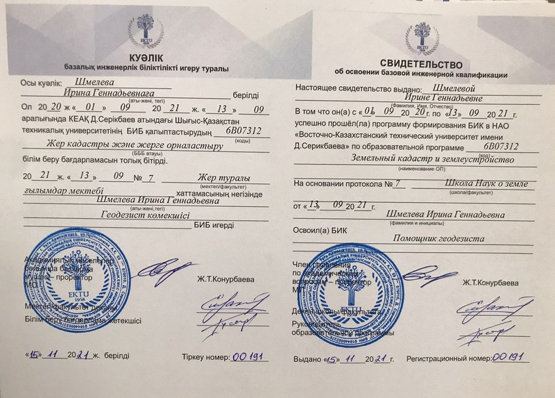 - специалиста Департамента «Научно-производственный центр земельного кадастра» - филиал не коммерческого акционерного общества «Государственная корпорация» «Правительство для граждан» по ВКО;