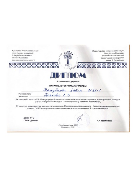 По окончании студенту присваивается академическая степень - бакалавр техники и технологий.