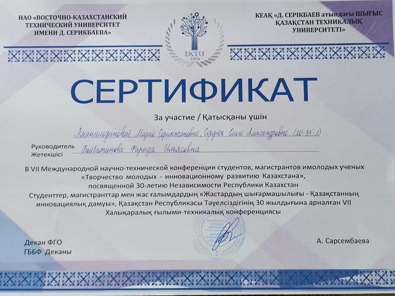 - Департамент «Научно-производственный центр земельного кадастра» - филиал не коммерческого акционерного общества «Государственная корпорация» «Правительство для граждан» по ВКО;