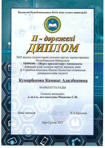 При реализации образовательной программы обязательным является привлечение обучающихся к научно-исследовательской работе. Результаты научных исследований студентов регулярно публикуются в изданиях республиканского и международного значения. Студенты принимают активное участие в конкурсах студенческих научных работ, в Республиканских и Международных научных конференциях молодых ученых и студентов, в республиканских предметных олимпиадах и олимпиадах по специальности, геодезических эстафетах.