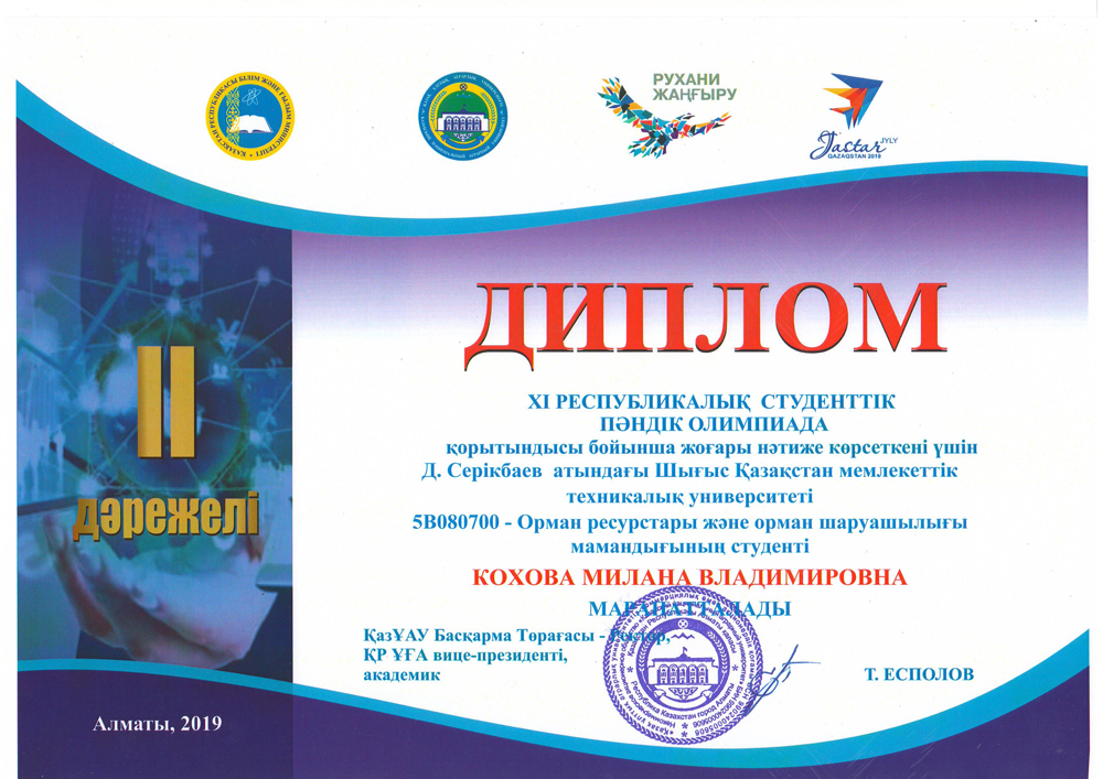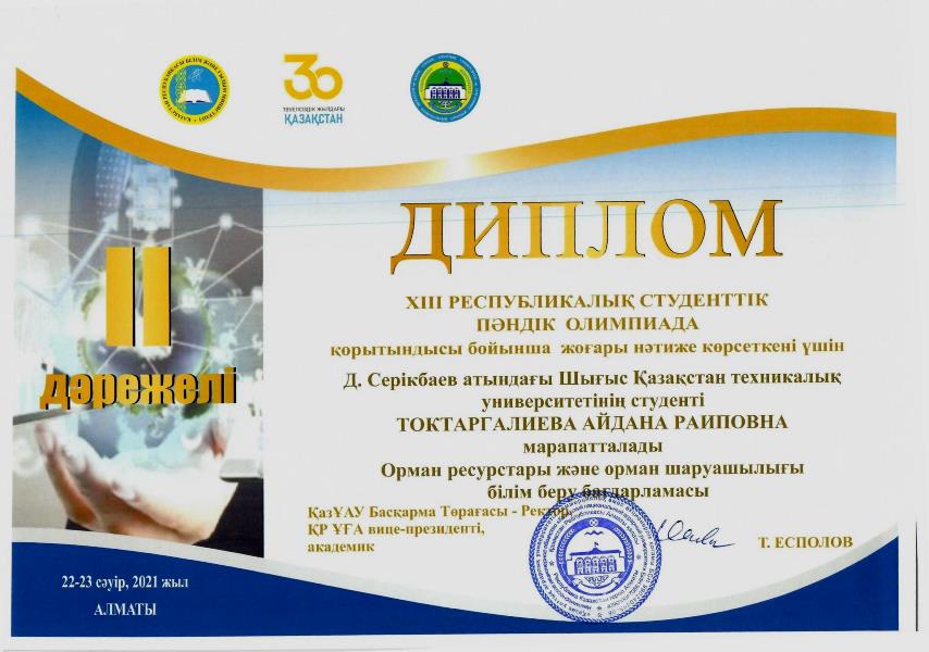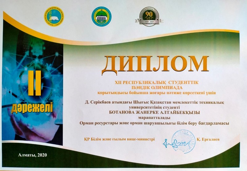 После окончания обучающемуся присваивается академическая степень бакалавра сельскохозяйственных наук по образовательной программе «6В08301 Лесные ресурсы и лесоводство».