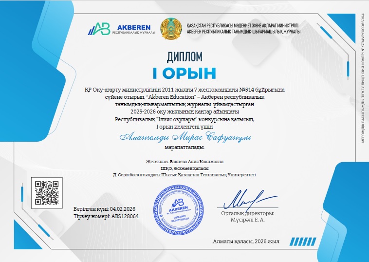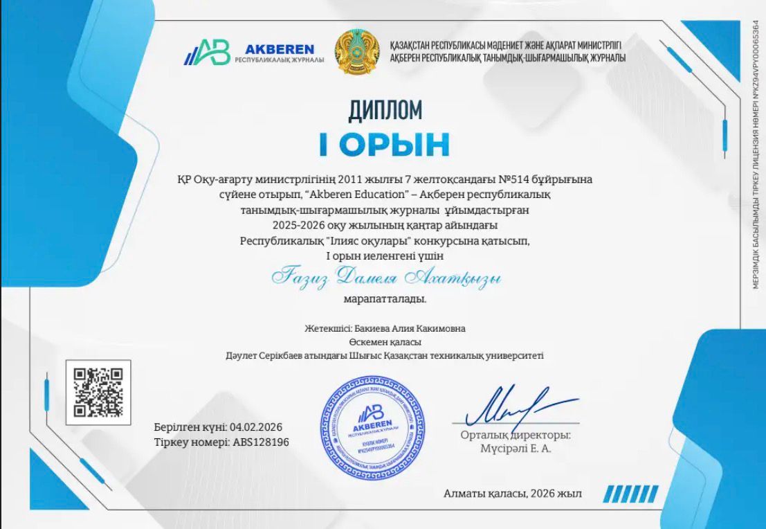 2026 жылдың қаңтар айында өткен Республикалық "Ілияс оқулары" конкурсына университетіміздің "Абай" клубы мүшелері қатысып, жүлделі орындар алды. Қатысқан студенттер ішінен топ жарып, 1-орын иеленген Ғазиз Дамеля, Құрманғали Дильназ, Амангелді Мирас болды.