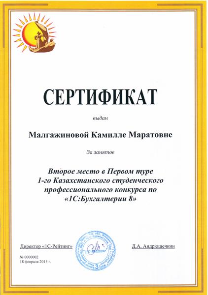 В 2015 году на региональном туре Первого Казахстанского студенческого профессионального конкурса по «1С: Бухгалтерии 8» студент специальности «Учет и аудит» Малгажинова К.М. заняла II место. Кроме этого, в 2015 году студенты специальности «Учет и аудит» в VII Республиканской студенческой предметной олимпиаде по специальности «Учет и аудит» стали вторыми.