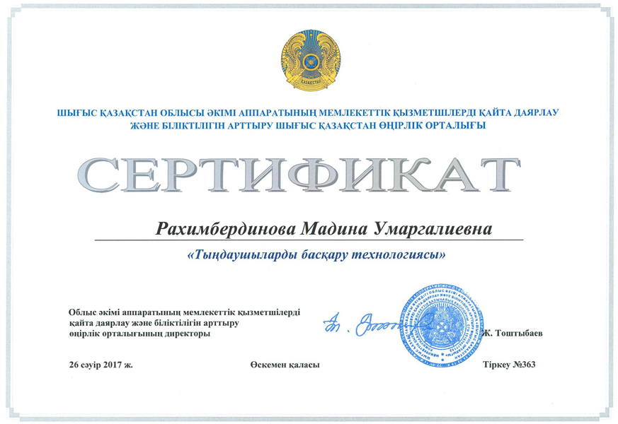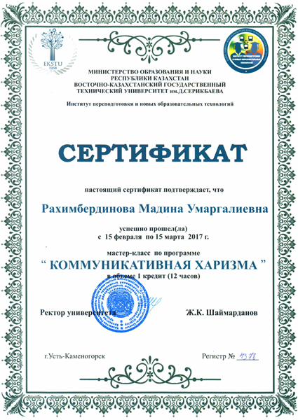 - Рахимбердинова Мадина Умаргалиевна – доктор PhD, Заведующий кафедрой