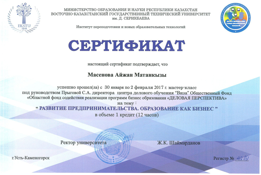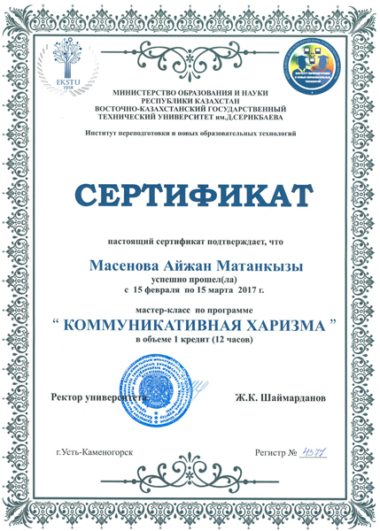 - Масенова Айжан Матановна – Старший преподаватель
