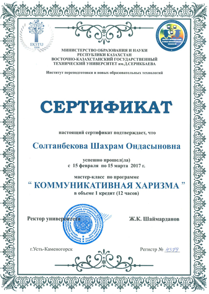 - Солтанбекова Шахрам Ондасыновна – Старший преподаватель