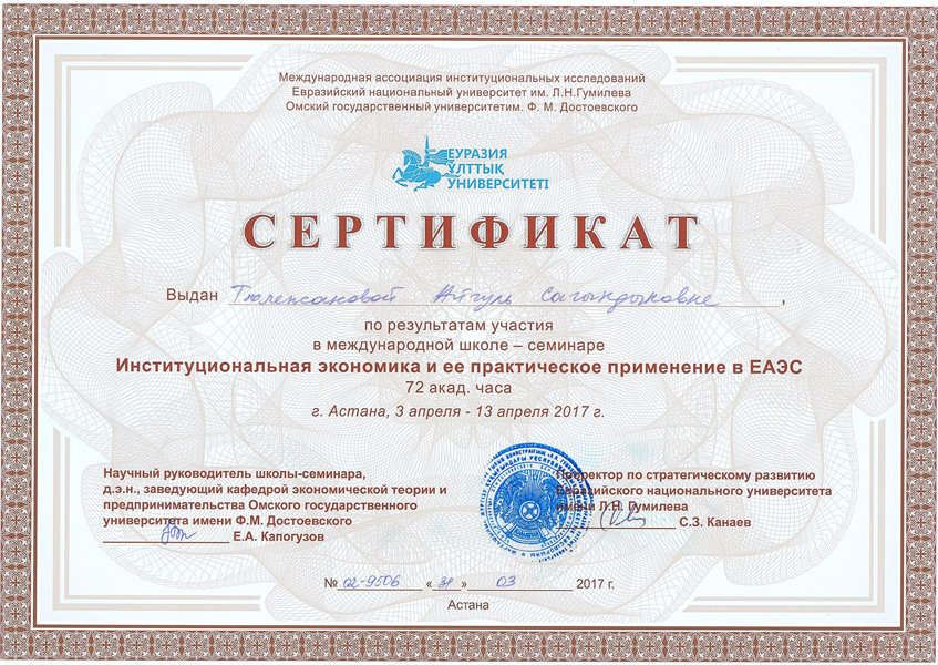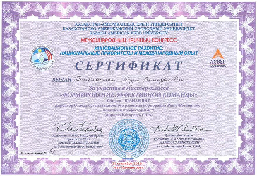 - Тюлежанова Айгуль Сагындыкова – Профессор, кандидат экономических наук