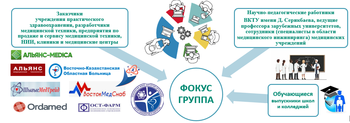 As part of the implementation of the educational program “6B07109 – Medical Engineering (Medical Equipment),” EKSTU cooperates with healthcare organizations, service and manufacturing companies, including: