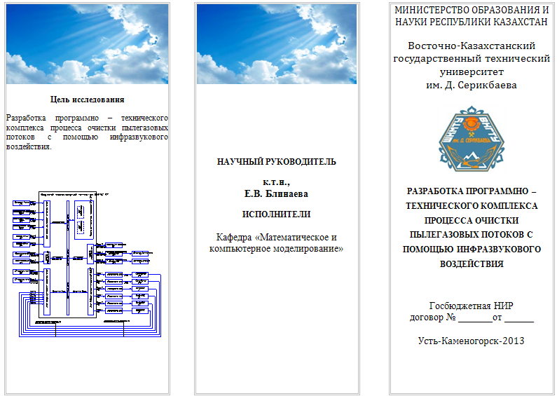 - Development of a software and hardware complex for the cleaning of dust and gas flows with the help of infrasound impact. The head: Blinaeva E.V. The executors: Smailova S.S.;