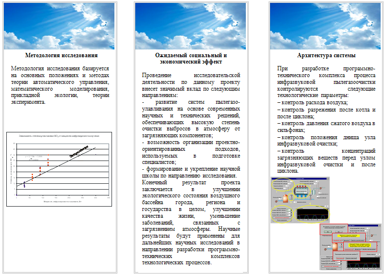 - information technology of infrasound cleaning of flue gases of thermal power complex objects;