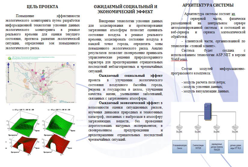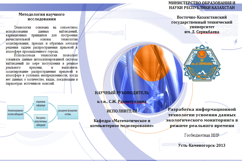 - Development of an information technology for assimilation of environmental monitoring data in real time. The customer: the Ministry of Education and Science of the Republic of Kazakhstan. The head: Rakhmetullina S.Zh., The executant: Belginova S.A.