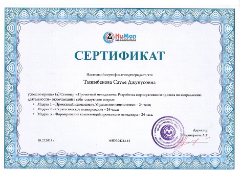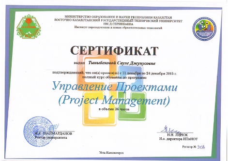 - «Жалпылама есептеулер», (Ғылыми жетекші PhD докторы, доцент Латкин И.В.);