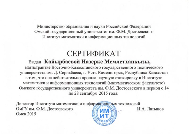 «6М070500– Математикалық және компьютерлік модельдеу» білім беру бағдарламасы