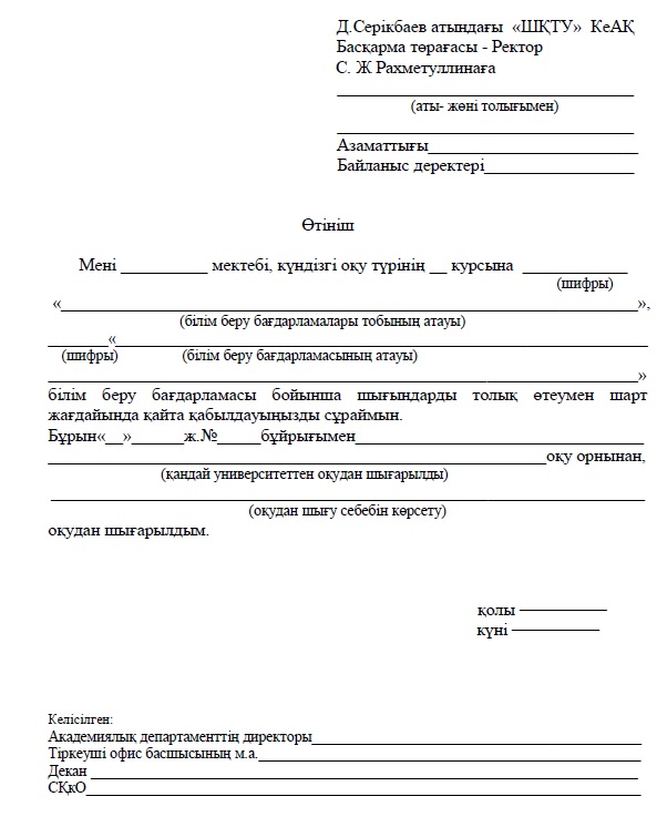 _________________________________________________________________________________ оқудан шығарылдым. оқудан шығу себебін көрсету