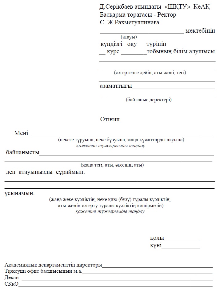 аты-жөнімді өзгерту туралы куәліктің көшірмесін