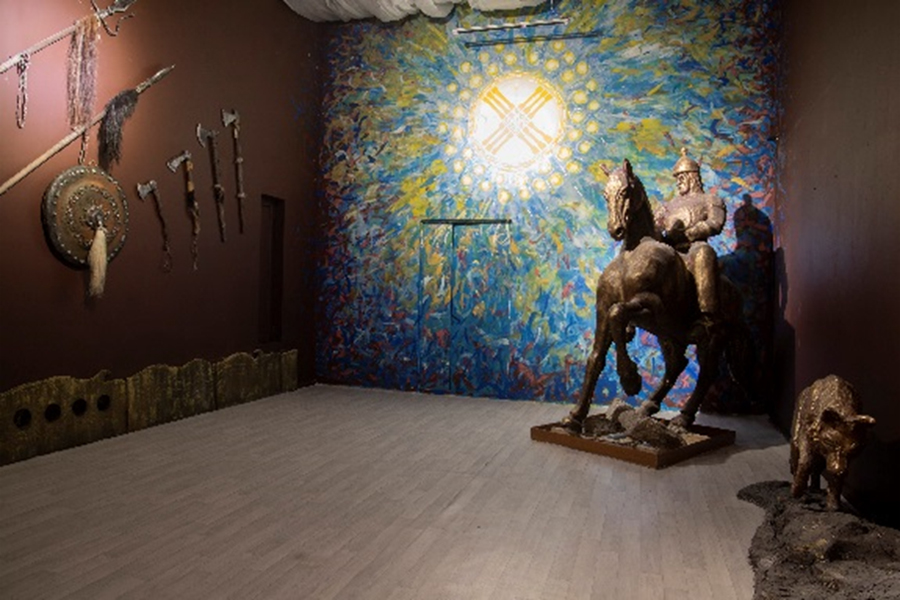 The structure of the third hall "Ancient Cults and Knowledge of Altai" contains symbols and images of astronomical representations and ancient mythology, where reveals the nature and essence of shamanic healing practices from the moment when man invented relict magic methods, as well as basic niches for the formation of spiritual values and production of symbols. This hall directly echoes the message of N. Nazarbayev's article "Seven Faces of the Great Steppe" in the context of updating the forms and methods of popularizing the historical heritage in modern society.