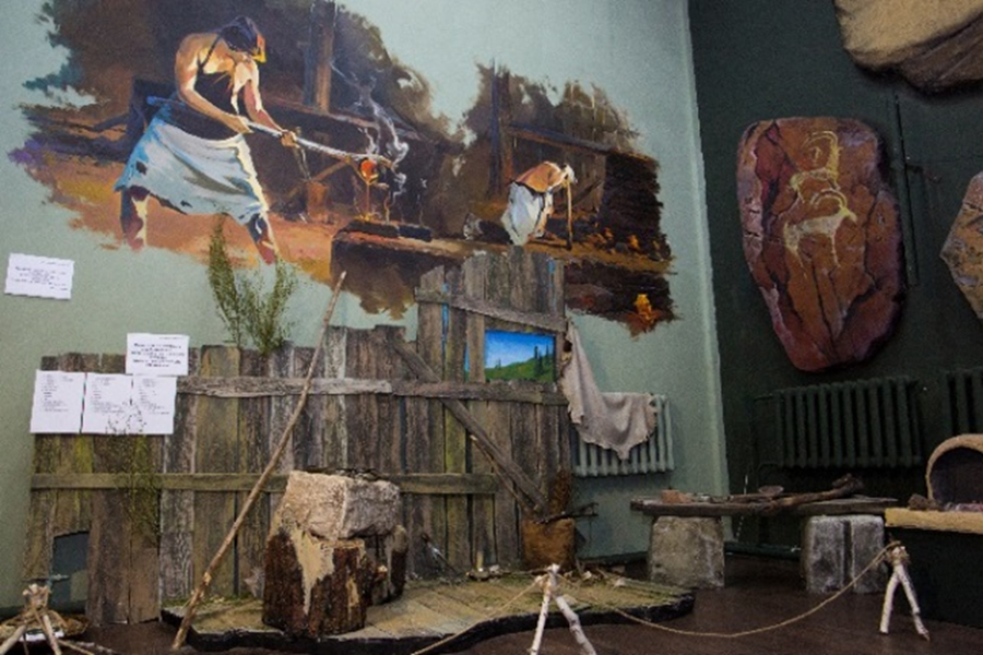 The second hall contains images and descriptions of millennial practices of the mineral resources development by human being from the Bronze Age. The hall presents material sources in the form of exhibits and models of ancient developments that reveal the stages of spreading the influence of metals not only on human economic activity, but also on the production of weapons and attributes of social status. The culture of the ancient metallurgists of Altai is an important historical example of human consumption, careful interaction with the ecosystem and a rational organization of labor.