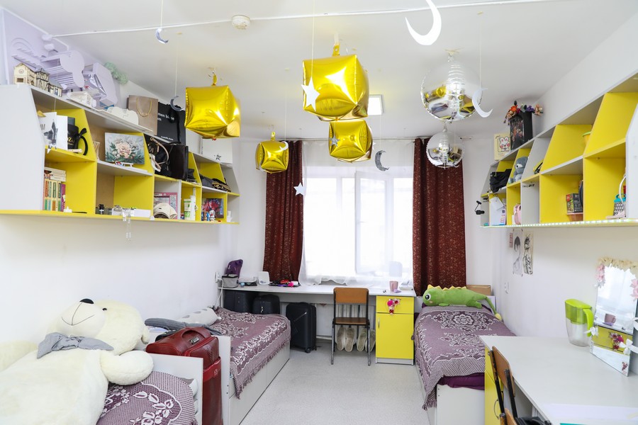 Общежитие оснащено компьютерным классом, комнатами отдыха, комнатами для самостоятельной подготовки, имеются тренажерный зал. Для комфортного проживания студентам предоставлены от двух до четырехместных комнат, с доступом к бытовой кухне и душевой. Комнаты оборудованы кроватями с прикроватными тумбочками, шкафом для одежды, а также предусмотрен стол со стульями. В общежитии имеются душевые комнаты, установлены стиральные машины (полуавтомат), бытовые кухни оснащены электроплитами.