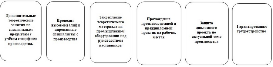 Цель : подготовка кадров под конкретные задачи, потребности и стандарты предприятия, сокращение разрыва между теорией и практикой.