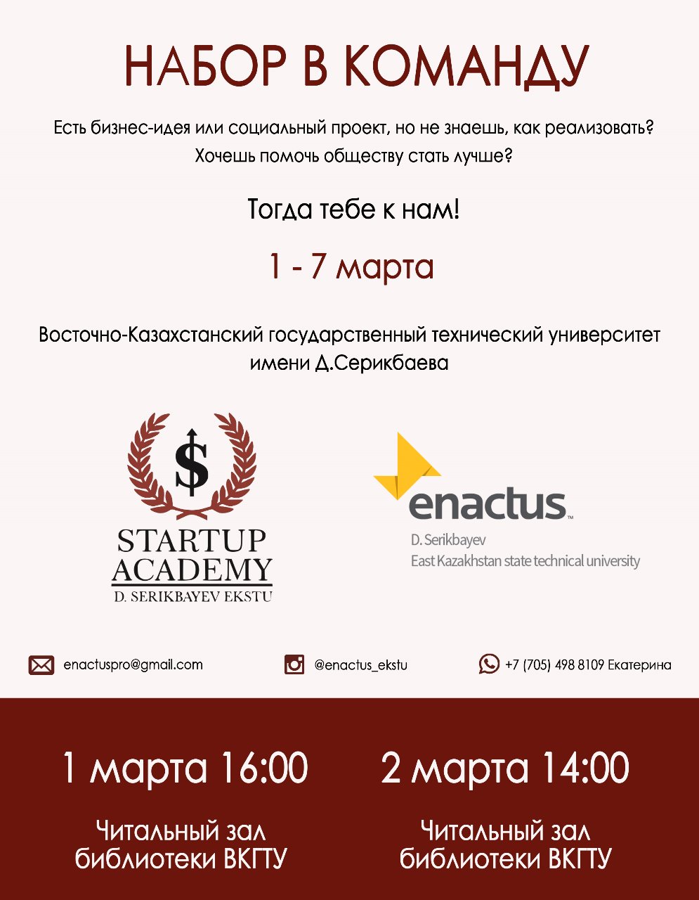 Стартап Академия Восточно-Казахстанского государственного технического университета имени Д.Серикбаева проводит свой второй набор студентов в команду!