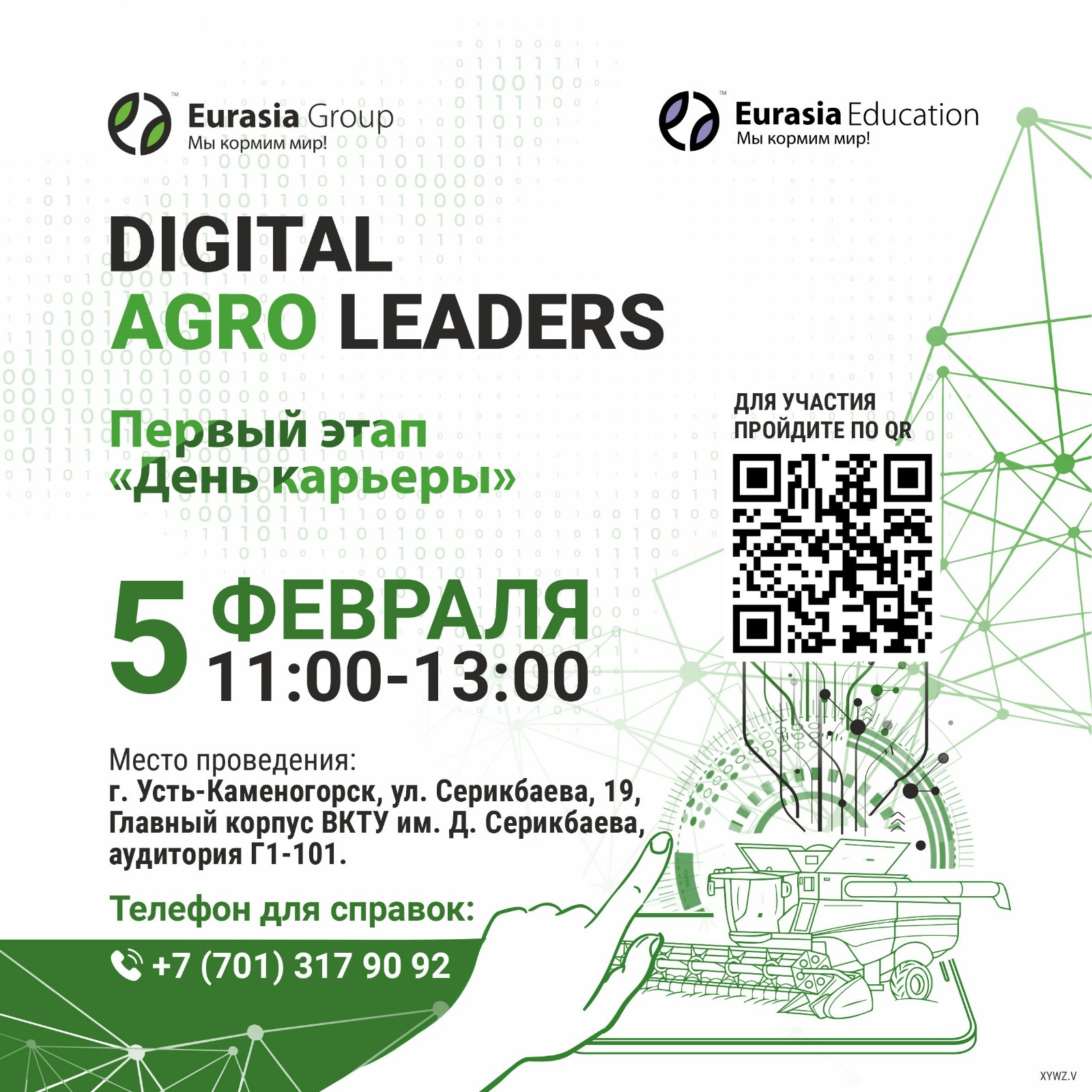 Для получения информации о конкурсе DIGITAL AGRO LEADERS студентам, принимающим участие в Дне карьеры от Eurasia Group Казахстан 05.02.25 г. в 11.00 в аудитории Г-1-101 необходимо пройти регистрацию по ссылке https://forms.office.com/r/JAw32VEMTX или QR: