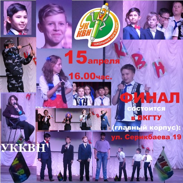 15 апреля в 16.00 ч. в актовом зале главного учебного корпуса ВКГТУ им. Д. Серикбаева пройдет финальная игра городского Чемпионата УККВН лиги «СТАРТ».