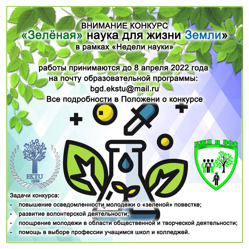 В преддверии Недели науки ОП "БЖД и ЗОС" объявляет конкурс «Зелёная» наука для жизни Земли». Конкурс проводится с целью повышения осведомленности молодежи о проблеме энерго- и ресурсосбережения в ежедневной жизни, формирования экологического мышления и поведения, а так же с профориентационной целью.