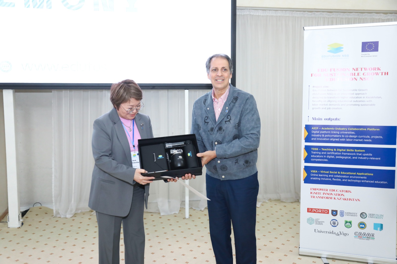 Аталған жетістік Еуропалық одақ (ЕО) қаржыландыратын Erasmus+ Edu-Fusion Network for Sustainable Growth (Edu-Fusion NSG) жобасын (ERASMUS-EDU-2024-CBHE-STRAND-3, Grant Agreement No. 101179805) іске асыру шеңберінде Университеттің оқыту сапасын арттыру және профессор-оқытушылар құрамының құзыреттерін халықаралық деңгейде тануға бағытталған жүйелі жұмысының нәтижесі болып табылады. ШҚТУ бұл жобада негізгі бенефициарлардың бірі ретінде қатысады. Жоба консорциумы Португалия, Испания және Қазақстаннан 11 серіктесті, оның ішінде Қазақстан Республикасы Ғылым және жоғары білім министрлігін біріктіреді. Edu-Fusion NSG білім беру бағдарламаларын жобалау және іске асыруға заманауи тәсілдерді енгізуге, практикалық-бағдарланған оқытуды дамытуға және «университет–индустрия» өзара іс-қимылын нығайтуға бағытталған. Сонымен қатар жоба оқытушыларды халықаралық сертификаттауды, олардың кәсіби өсуін қолдау тетіктерін дамытуды көздейді.