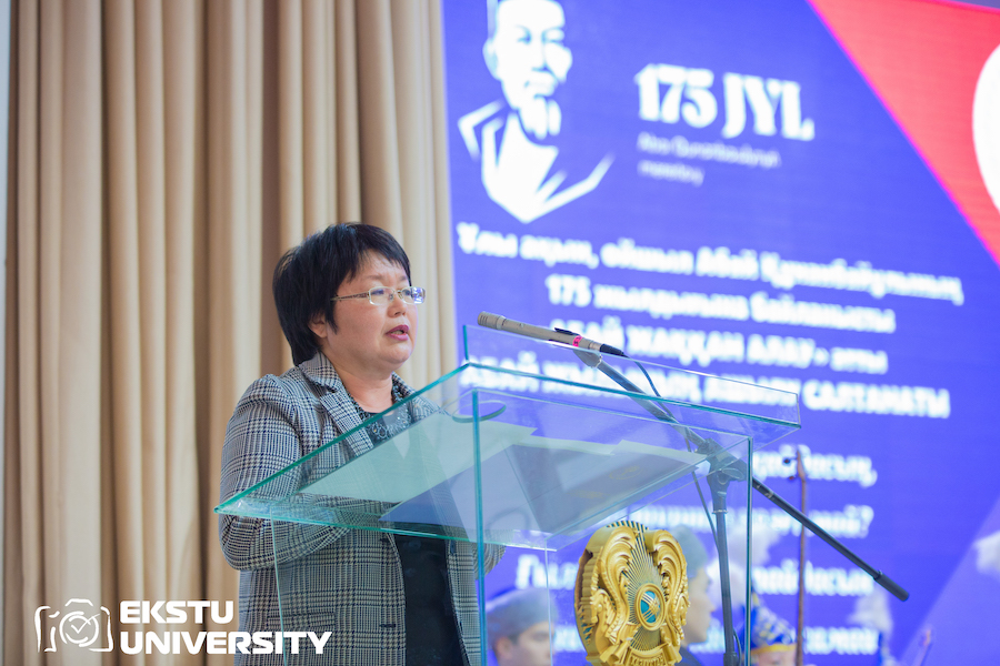 «Абай философиясы біздің оқу орнында тәрбие жұмысының негізіне алынған. Бүгінгі іс-шарада студенттердің көп болғаны нұр үстіне нұр. Себебі, білім беру мекемесі ретінде біздің басты мақсат-міндетіміз осы жастар арасында Абай тынымын насихаттау, жақындата түсу», - деді.