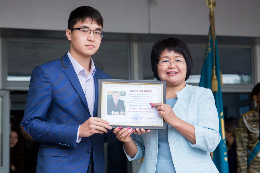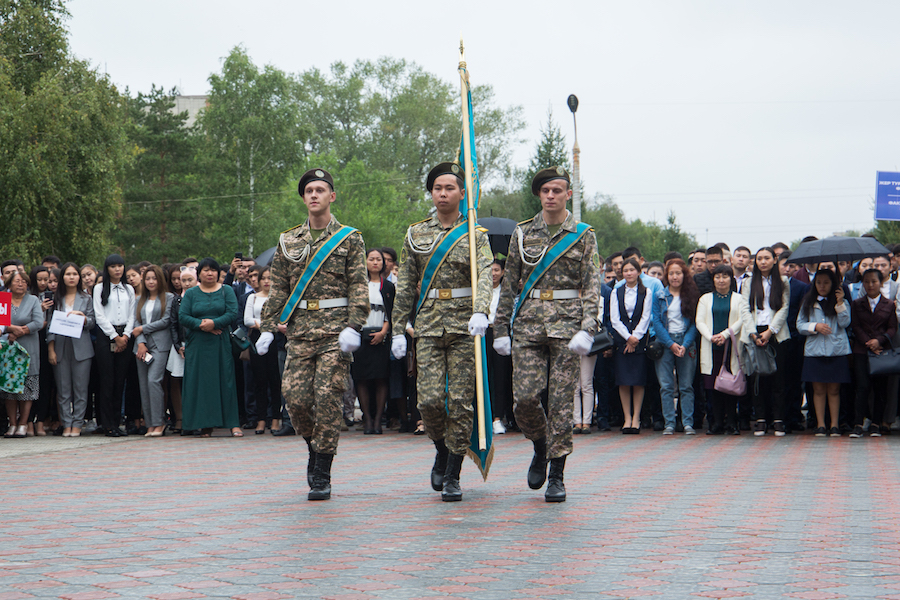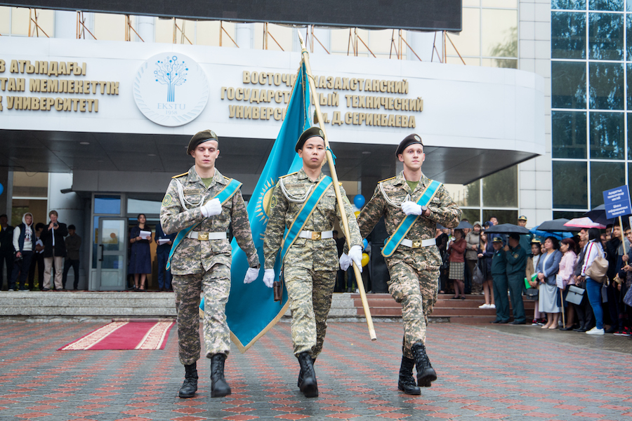 У главного корпуса Восточно-Казахстанского государственного технического университета им. Д. Серикбаева состоялось шестидесятое юбилейное торжественное мероприятие посвященное «Дню знаний» и началу нового учебного года. По традиции с приветственным словом выступила и.о. ректора университета Сауле Рахметуллина и вручила сертификаты Президентской стипендии лучшим студентам вуза.
