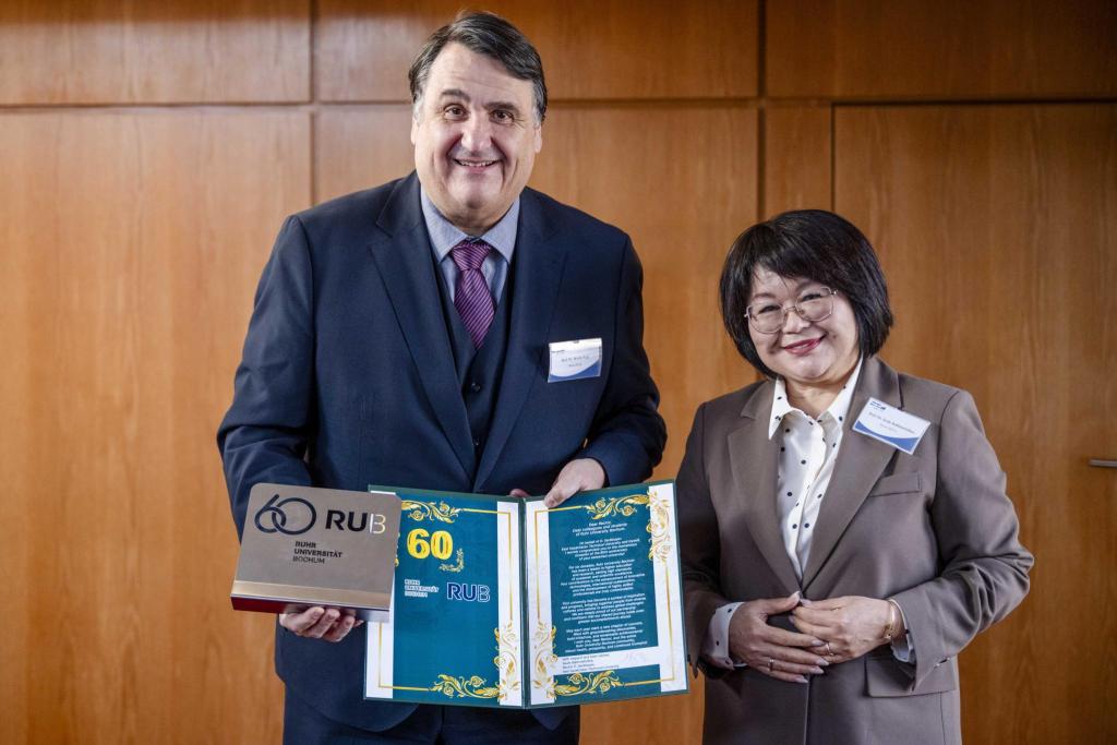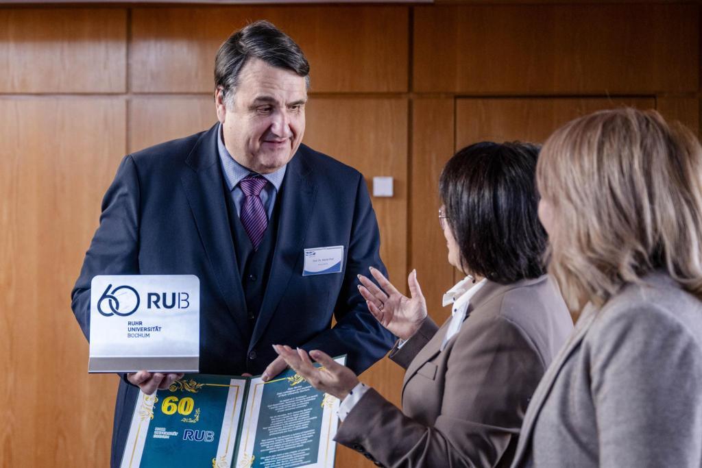 Важным событием визита стало подписание меморандума о сотрудничестве между ВКТУ и Рурским университетом Бохум. Кроме того, ректор ВКТУ Сауле Рахметуллина поздравила РУБ с 60-летним юбилеем, подчеркнув значимость партнерства.