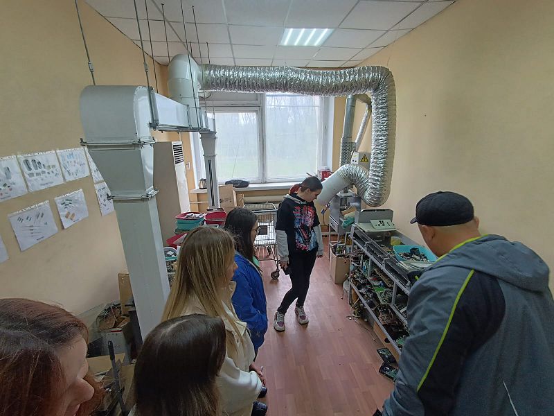 Сондай-ақ, жобаны қорғауға дайындық аясында "Клевер" экоклубының активі ШҚТУ-дың электрондық қалдықтарды қайта өңдеу учаскесіне барды. Бұл учаскеде ұйымдастыру техникасын бөлшектегеннен кейін пластикті сұрыптау және оны ұсақтау жүзеге асады. Студенттер шағын цехтың жұмысымен танысып, қызметкерге көптеген сұрақтар қойды. Болашақта студенттер алған білімдерін университетте қалдықтарды, оның ішінде пластик қалдықтарды бөлек жинау мәселелері бойынша білімін нығайту үшін пайдаланатын болады.