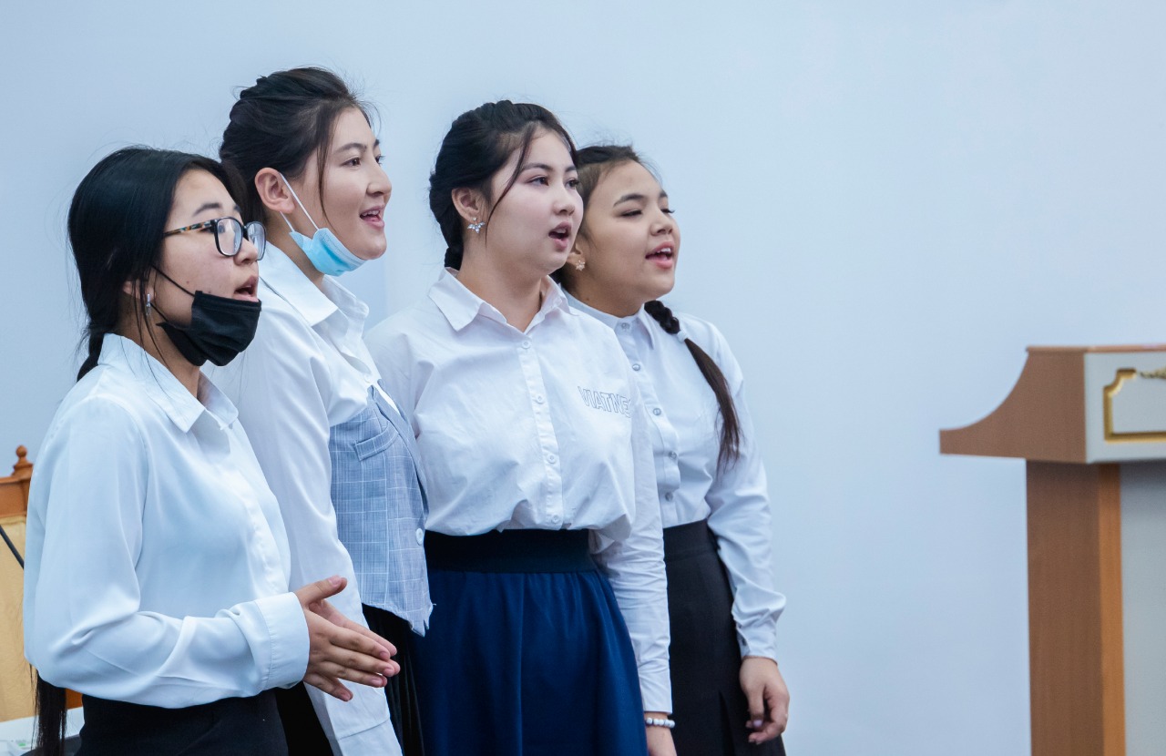 Студенттер «Жайнай бер, мәңгі Қазақстан», «Халық әні Елім-ай», «Марш Целинников», «Желтоқсан желі», «Атамекен» әндерін айтып, жиналған көрермендердің жүрегіне жылулық пен патриоттық сезімдерді ұялатты.